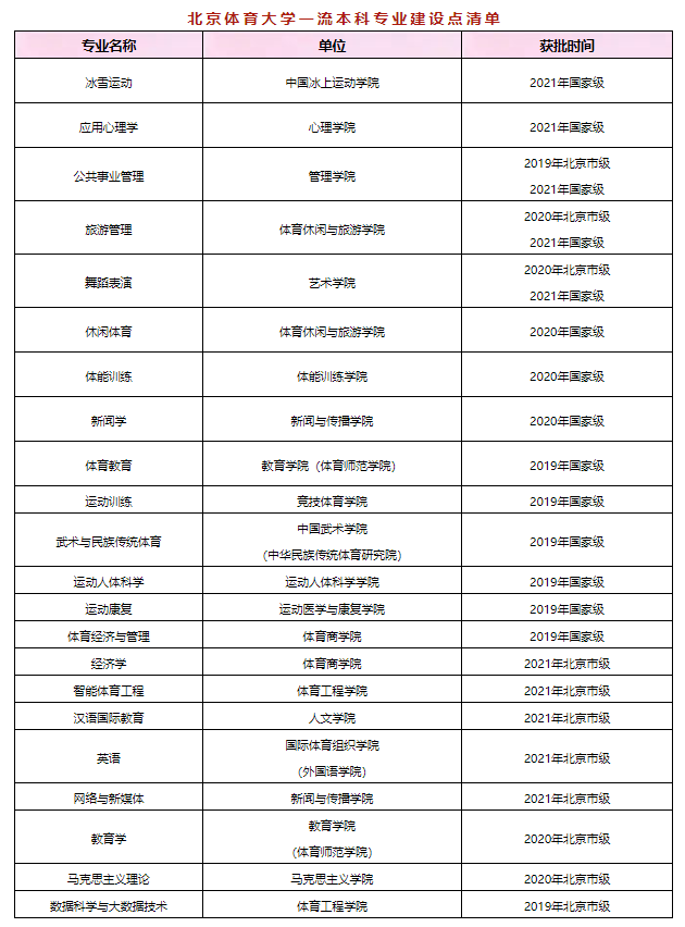 近日,教育部辦公廳公布了2021年度國家級和省級一流本科專業(yè)建設(shè)點(diǎn)名單。北京體育大學(xué)冰雪運(yùn)動(dòng)、應(yīng)用心理學(xué)、公共事業(yè)管理、旅游管理、舞蹈表演5個(gè)專業(yè)獲批國家級一流本科專業(yè)建設(shè)點(diǎn),經(jīng)濟(jì)學(xué)、智能體育工程、漢語國際教育、英語、網(wǎng)絡(luò)與新媒體5個(gè)專業(yè)獲批北京市級一流本科專業(yè)建設(shè)點(diǎn)。自2019年教育部實(shí)施一流本科專業(yè)建設(shè)“雙萬計(jì)劃”以來,學(xué)校共獲批一流本科專業(yè)建設(shè)點(diǎn)22個(gè),其中國家級14個(gè)、北京市級8個(gè),在2022年本科招生專業(yè)中一流專業(yè)建設(shè)點(diǎn)已覆蓋75%以上,今年錄取的本科新生中將有超過90%的同學(xué)進(jìn)入國家級、省級一流專業(yè)建設(shè)點(diǎn)學(xué)習(xí)。