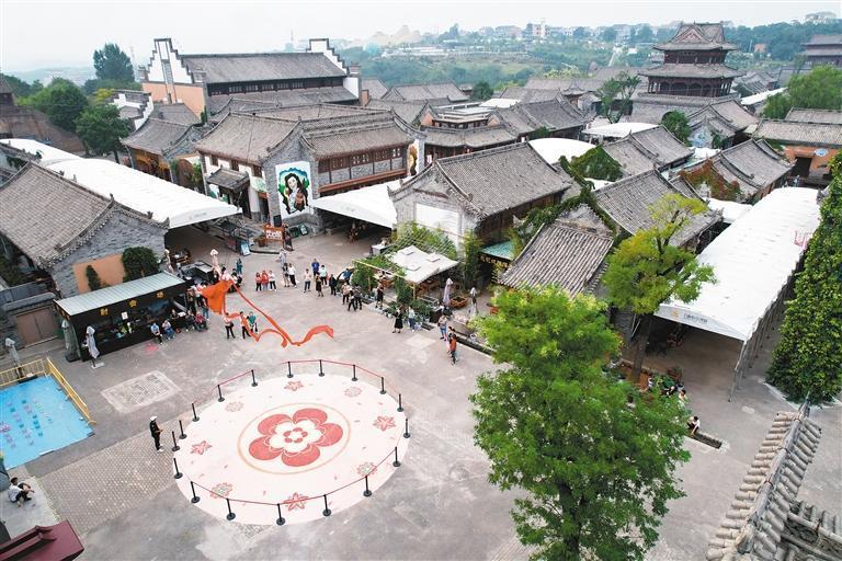 近日,游客在白鹿原影視城內(nèi)游覽(無(wú)人機(jī)照片)。