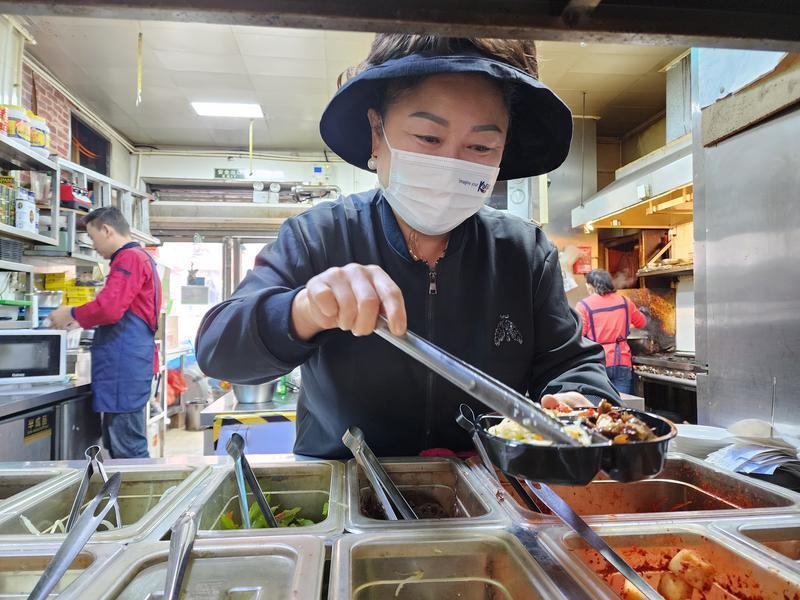 盡管9月23日參加韓國(guó)駐西安總領(lǐng)事館舉辦的韓國(guó)國(guó)慶日招待會(huì)很晚才回去,第二天一大早,文美卿仍如往常一樣來(lái)到自己在西安綠地中央廣場(chǎng)韓國(guó)風(fēng)情街經(jīng)營(yíng)的明東碳烤韓國(guó)料理店。“最近我們剛開(kāi)展外賣(mài)業(yè)務(wù),我來(lái)幫著做一些餐食包裝和準(zhǔn)備工作。”文美卿說(shuō)。