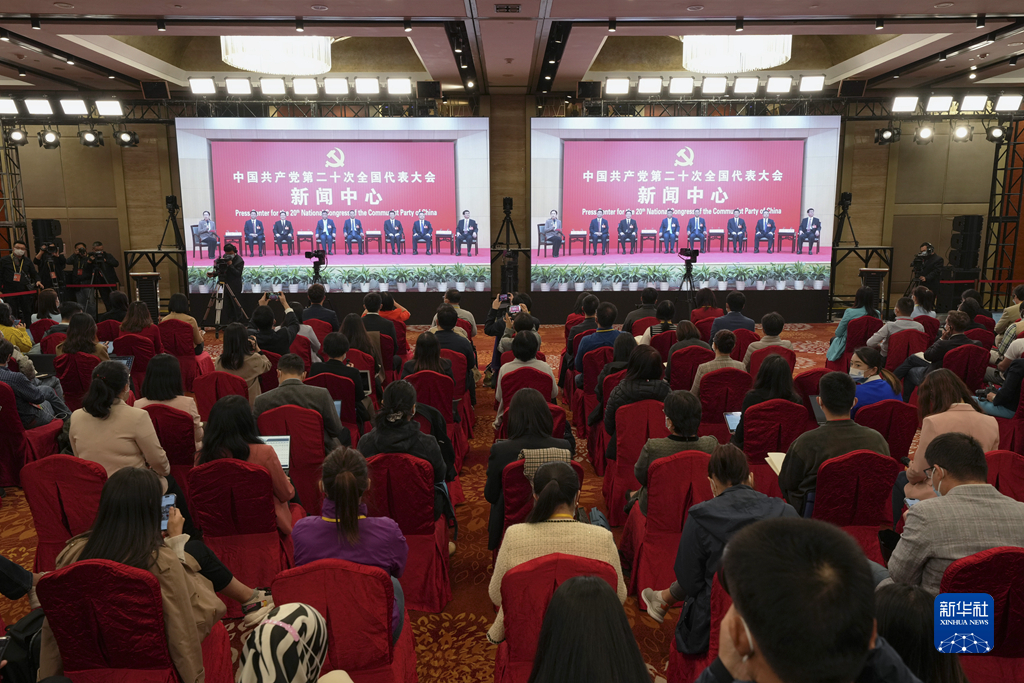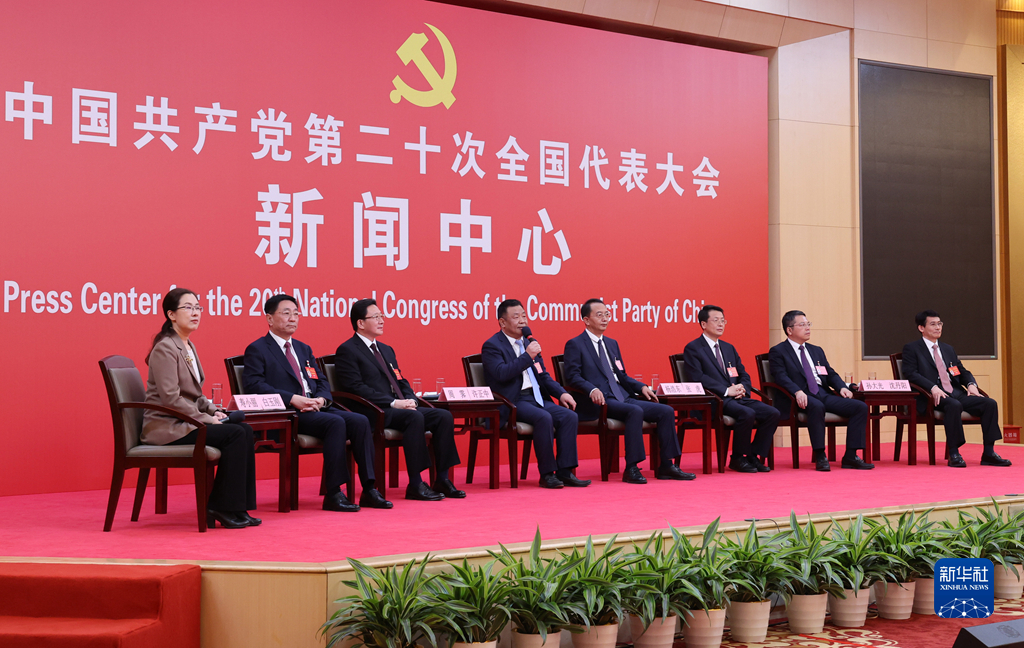 10月19日,中國(guó)共產(chǎn)黨第二十次全國(guó)代表大會(huì)新聞中心舉行集體采訪。山東、河南、湖北、湖南、廣東、廣西、海南代表團(tuán)新聞發(fā)言人出席,介紹代表團(tuán)學(xué)習(xí)討論二十大報(bào)告情況,并回答記者提問(wèn)。新華社記者 張玉薇 攝