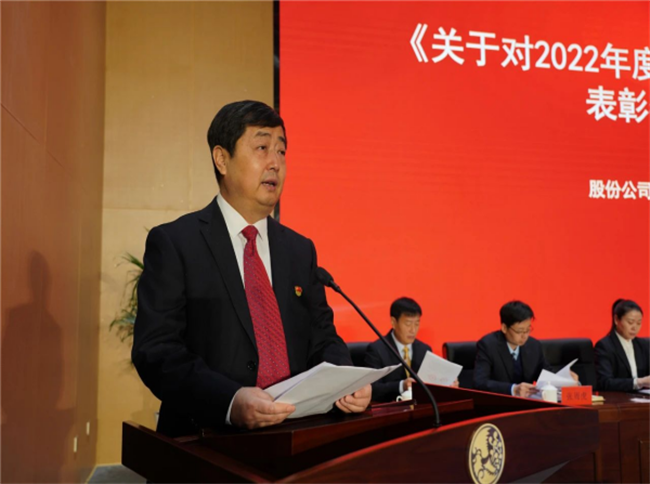 西鳳股份公司副董事長、總經(jīng)理賈智勇宣讀《關(guān)于對2022年度先進(jìn)單位、先進(jìn)個人進(jìn)行表彰獎勵的決定》