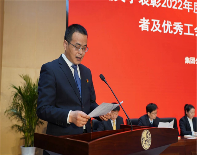 西鳳集團(tuán)公司副總裁楊會軍宣讀《關(guān)于表彰2022年度先進(jìn)分會和優(yōu)秀工會積極分子的決定》