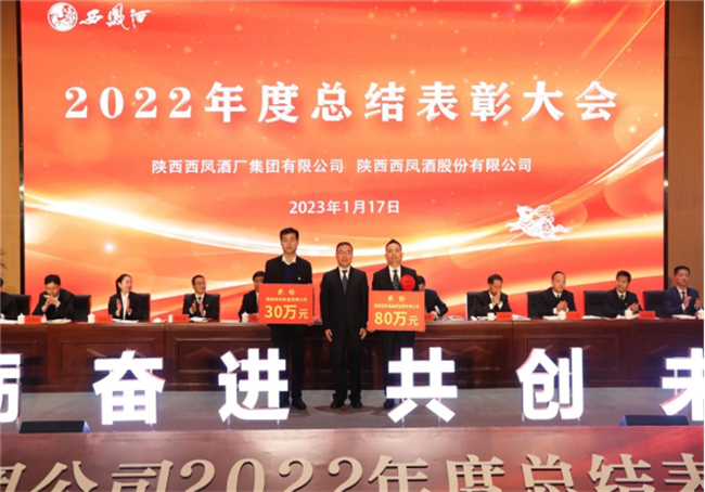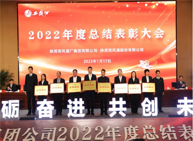 會上,全體與會人員共同觀看了《2022年公司發(fā)展成果回顧》視頻。西鳳股份公司副董事長、總經(jīng)理賈智勇宣讀《關(guān)于對2022年度先進(jìn)單位、先進(jìn)個人進(jìn)行表彰獎勵的決定》;西鳳集團(tuán)公司黨委副書記郭拴新宣讀《關(guān)于命名表彰公司2022年度文明單位、文明班組、文明家庭和文明宿舍的決定》;西鳳集團(tuán)公司副總裁楊會軍宣讀《關(guān)于表彰2022年度先進(jìn)分會和優(yōu)秀工會積極分子的決定》;西鳳股份公司副總經(jīng)理師紅勤宣讀《關(guān)于對“大干四季度 沖刺全年目標(biāo)任務(wù)”競賽活動獲獎單位進(jìn)行表彰獎勵的決定》。公司領(lǐng)導(dǎo)為受表彰的先進(jìn)單位和個人頒發(fā)了獎牌和榮譽證書。