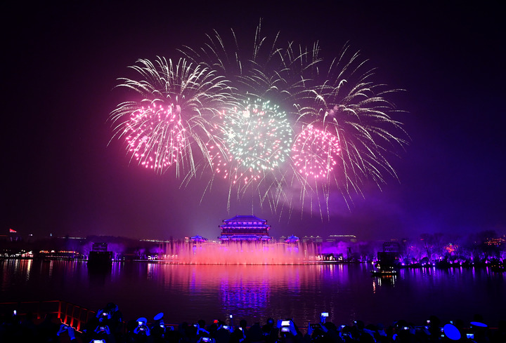 2月5日,西安大唐芙蓉園內(nèi)進行的煙花晚會現(xiàn)場。新華社記者 劉瀟攝