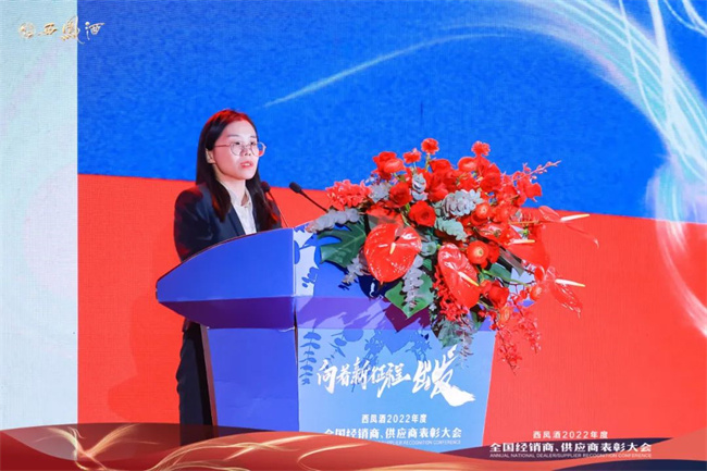 西鳳股份公司副總經(jīng)理周艷花作2022年營銷工作總結(jié)暨2023年營銷工作規(guī)劃的報告。報告總結(jié)到,2022年,西鳳酒與廣大經(jīng)銷商攜手共克疫情、齊心征戰(zhàn)市場,在品牌推廣、市場深耕、終端建設、營銷創(chuàng)新、廠商共建等方面取得了突破性的勝利,西鳳酒的品牌張力和市場美譽度得到了大幅度提升。報告提出,2023年,西鳳將踐行“圍繞一個中心”“聚焦兩點優(yōu)化”“推動三項提升”“落實四大行動”的“1234”工作思路,深入推進營銷工作向高質(zhì)量轉(zhuǎn)型,確保結(jié)構(gòu)升級有突破、目標完成有保障、持續(xù)發(fā)展有后勁,奮力闖出一條西鳳高質(zhì)量轉(zhuǎn)型發(fā)展之路。