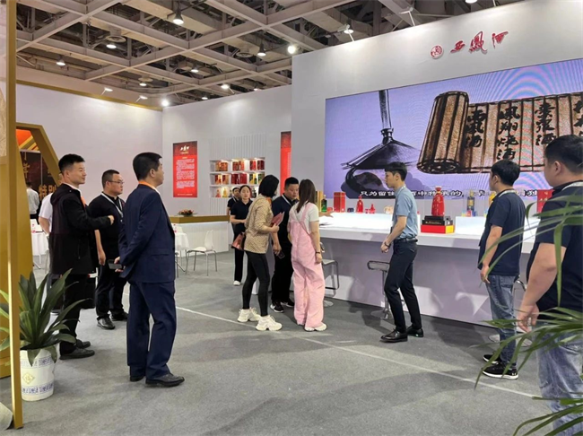 在產品展示柜前,大家紛紛舉起酒杯品嘗不同的西鳳酒產品,對其獨具鳳香、醇厚細膩的口感連連稱贊、愛不釋手,酒香縈繞喉間,西鳳酒展區(qū)仿佛成了酒博會中的白酒藝術博物館,釋放出了三千年老名酒的無限魅力。