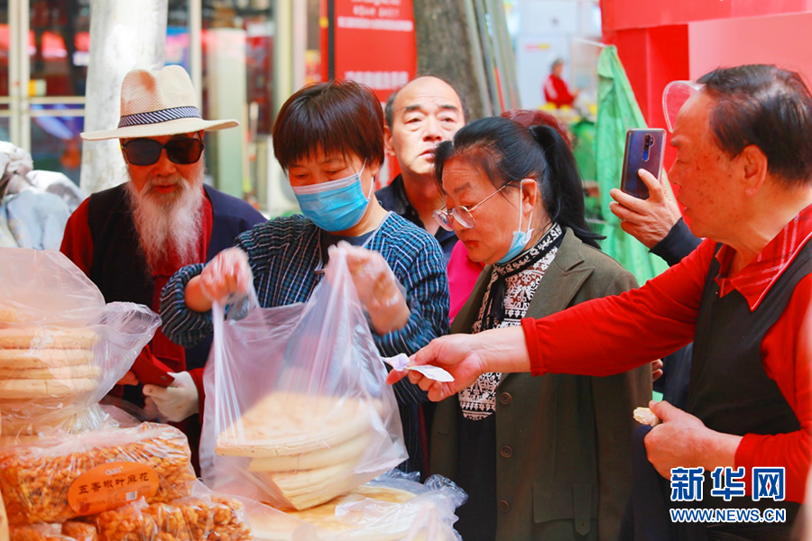 在第三屆陜西面食大會(huì)現(xiàn)場(chǎng),觀(guān)眾購(gòu)買(mǎi)面食鍋盔。新華網(wǎng) 楊喜龍 攝
