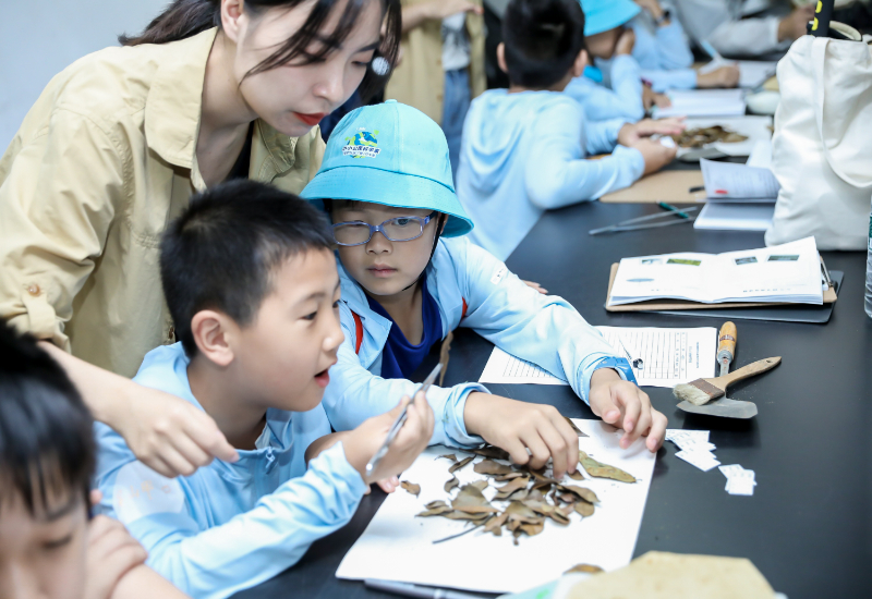 學生正在用心探究樹葉品種(錢江源國家公園管理局供圖)