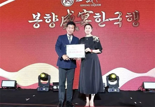 自進(jìn)入韓國(guó)市場(chǎng)以來(lái),西鳳酒以大氣雅致的包裝、卓越優(yōu)秀的品質(zhì)、醇香甘美的口感贏得了廣大消費(fèi)者的喜愛(ài),銷售業(yè)績(jī)連年翻倍增長(zhǎng),并連續(xù)兩年榮獲“韓國(guó)酒類鑒賞大賽”特等獎(jiǎng)及“Best of 2023”大獎(jiǎng)。會(huì)上,陜西西鳳酒股份有限公司副總經(jīng)理、營(yíng)銷公司總經(jīng)理周艷花為韓國(guó)華岡酒業(yè)株式會(huì)社頒發(fā)“海外拓展獎(jiǎng)”,對(duì)金嵐洙社長(zhǎng)及其團(tuán)隊(duì)為西鳳酒市場(chǎng)拓展所做出的的努力表示感謝。