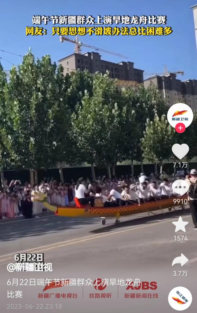 黃土高原的干旱土地里,“撐著走”的各類旱地龍舟賽,與江南水鄉(xiāng)一樣,充滿了氣勢與歡樂,網友妙評說:“這些快樂里沒有一點水分!”
