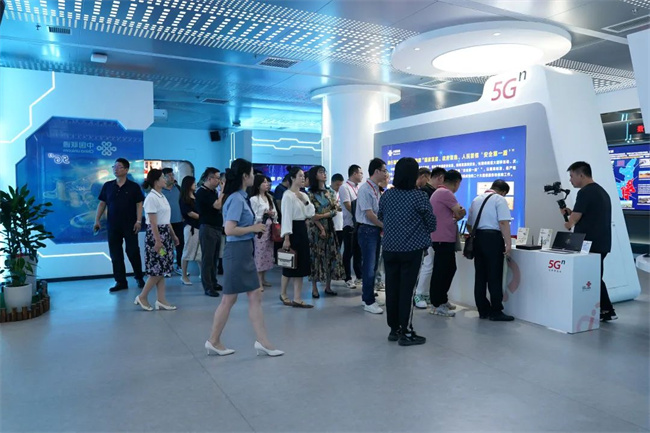 上午9時許,全體嘉賓參觀了5G科技創(chuàng)新館,聽取了陜西聯(lián)通立足“國家隊、主力軍、排頭兵”定位,聚焦中國聯(lián)通五大主責主業(yè),奮楫數(shù)字經(jīng)濟主航道取得的實踐成果的介紹,詳細了解了5G數(shù)字技術在政務服務、經(jīng)濟金融、文化教育、醫(yī)療衛(wèi)生、工業(yè)互聯(lián)網(wǎng)、園區(qū)建設、生態(tài)旅游等方面的智慧應用。他們對近年來數(shù)字技術賦能千行百業(yè)的成果表示驚嘆,同時對陜西聯(lián)通的應用及創(chuàng)新能力連連贊揚。