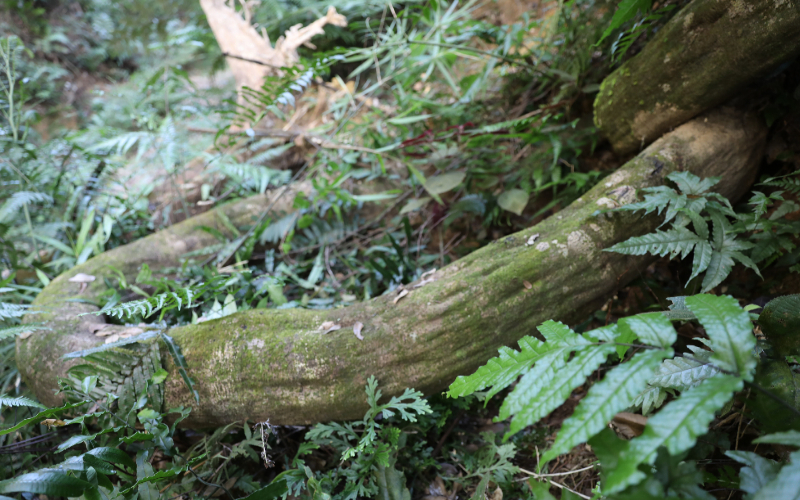 一片深山老林中,若沒(méi)有眼前這些無(wú)序的秋千般的古藤相伴,那絕不是健康完整的生態(tài)林,甚至有可能是人工經(jīng)濟(jì)林。它們,其中一部分被選擇性的保護(hù)下來(lái),還有大量的頑強(qiáng)的競(jìng)爭(zhēng)者被選擇性淘汰,這樣的經(jīng)濟(jì)林,它天生有基因缺陷。而一個(gè)不受破壞的原始生態(tài)林中,往往能代表這片綠色的名片恰恰不是那些高顏值的高大林木,反而是長(zhǎng)相平常的桫欏,甚至是這些相貌古怪的藤蘿,它們身上有著更遠(yuǎn)古的基因,讓我們看見(jiàn)亙古以前的樣子。