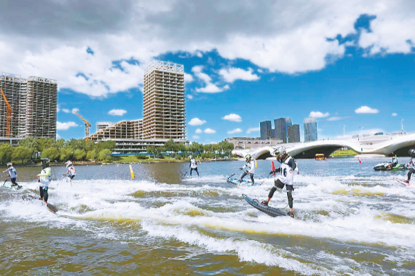 7月,全國(guó)電動(dòng)沖浪板聯(lián)賽(北京大運(yùn)河站)在北運(yùn)河舉行。本報(bào)記者 白繼開攝