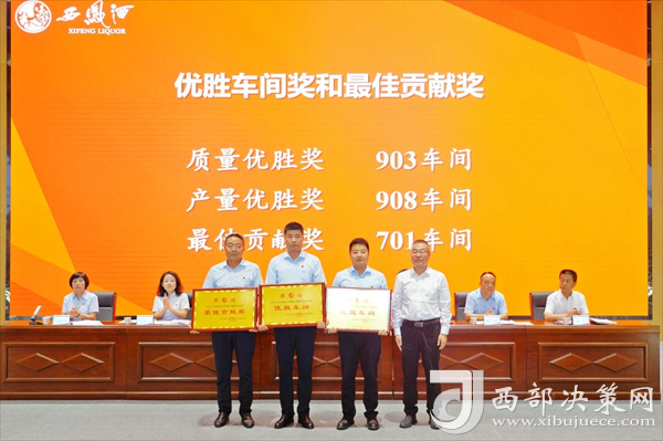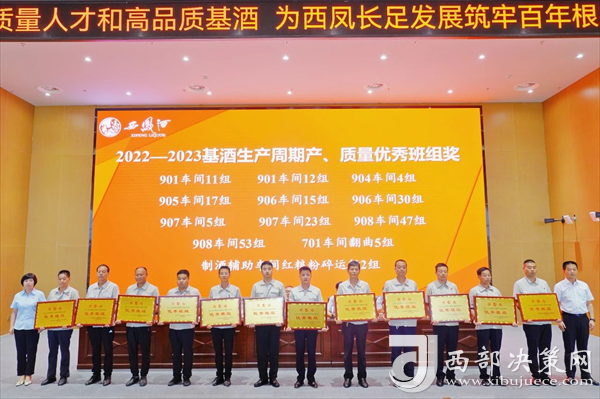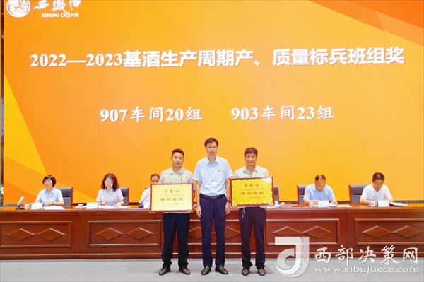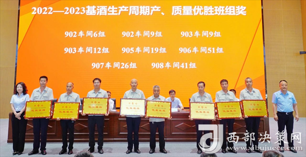 會(huì)上,張周虎宣讀了《關(guān)于對2022—2023基酒生產(chǎn)周期產(chǎn)質(zhì)量勞動(dòng)競賽獲獎(jiǎng)車間、班組進(jìn)行表彰獎(jiǎng)勵(lì)的決定》。與會(huì)領(lǐng)導(dǎo)為受表彰的獲獎(jiǎng)車間、班組頒發(fā)獎(jiǎng)牌。