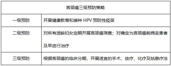 2017年中國(guó)子宮頸癌綜合防控指南提出了三級(jí)預(yù)防策略,其中接種HPV疫苗是第一步。
