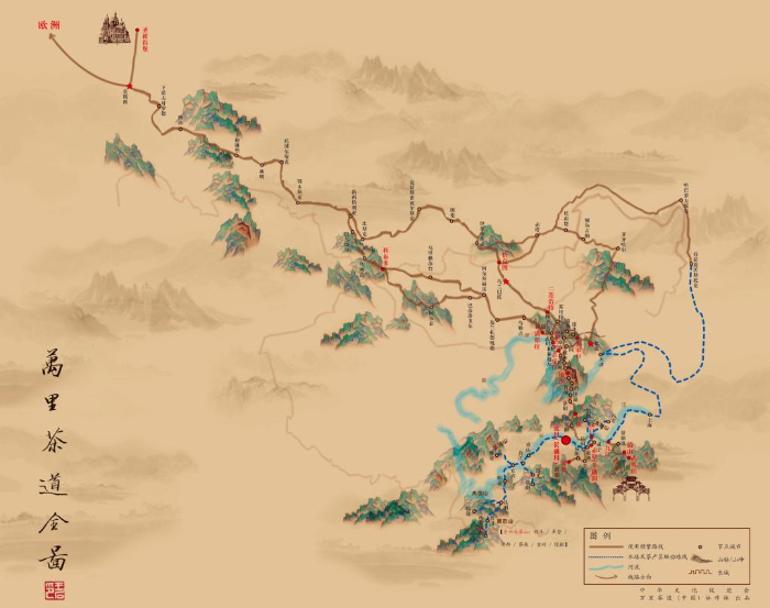 萬(wàn)里茶道是興盛于17世紀(jì)至20世紀(jì)初的茶葉貿(mào)易國(guó)際商道,它貫穿中國(guó)南北,經(jīng)蒙古、俄羅斯向西至歐洲各國(guó),全長(zhǎng)13000多公里。