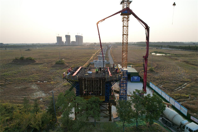 10月16日,在滁州市南譙區(qū)跨京滬高鐵立交特大橋施工現(xiàn)場,隨著最后一車混凝土完成灌注,中鐵一局新建上海至南京至合肥高鐵滬寧合高鐵安徽段站前一標跨京滬高鐵立交特大橋(48+80+48m)全線首個連續(xù)梁0#塊混凝土澆筑完畢。