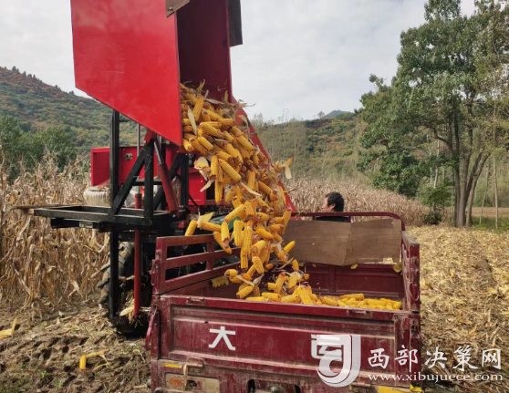 西部決策網(wǎng)訊(記者帥華鋒 通訊員 余小芹  余雅各  李三良)田疇沃野好“豐”光,遍地金黃糧滿倉。金秋時節(jié),甘肅隴南兩當(dāng)縣西坡鎮(zhèn)田間地頭的玉米喜獲豐收,村民們正利用晴好天氣采收玉米,忙得不亦樂乎,家家戶戶房前屋后堆滿了金黃的玉米,洋溢著豐收喜悅的笑臉與收獲的金黃色玉米交相輝映,勾勒出一幅動人的金秋豐收圖。