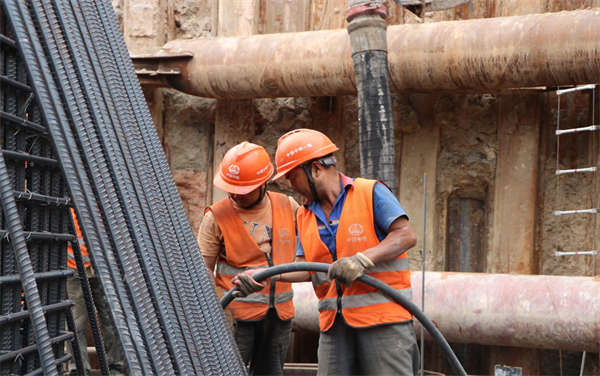 為確保本次混凝土澆筑施工安全順利完成,項目部集中組織現(xiàn)場管理人員和協(xié)作隊伍,對施工方案進行詳細討論、學習,總結(jié)前期施工經(jīng)驗,完善各工序銜接,對人員配置及分工進行精細化部署,細化節(jié)點目標,明確責任。澆筑過程中,嚴格控制混凝土入模速度,緊盯混凝土振搗質(zhì)量,專人盯控,確保了61#主墩承臺的安全順利澆筑。