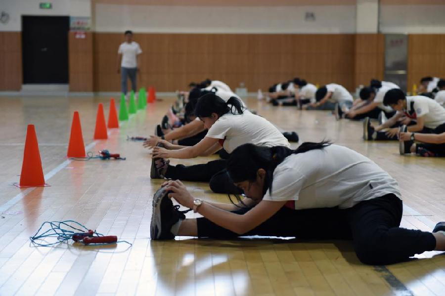 必考項目包括1000米跑(男生)、800米跑(女生)、1分鐘跳繩,每項滿分15分。男生選考項目包括立定跳遠、50米跑、單杠引體向上、前擲實心球,女生選考項目包括立定跳遠、50米跑、1分鐘仰臥起坐、前擲實心球。各市、縣(區(qū))教育行政部門每年在規(guī)定的選考項目范圍中隨機抽取一項作為當年的考試項目,滿分10分。各地抽取選考項目時間必須在每年春季學期開學后進行,并及時向考生和社會公布,轄區(qū)內(nèi)所有考生統(tǒng)一參加該項測試。