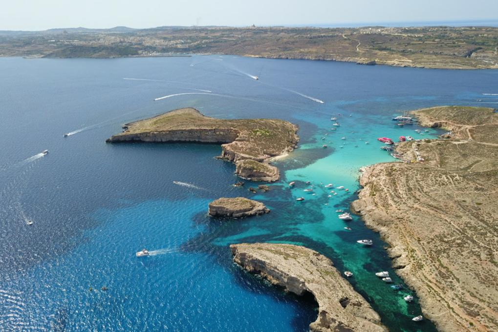 這是2023年7月7日在馬耳他科米諾島拍攝的海島風(fēng)光(無(wú)人機(jī)照片)。新華社記者陳文仙攝