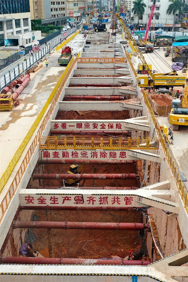 “中大八院站位于福華路街道下方,道路總寬度18米,而該車站圍護結構寬為22米,距居民房屋地下結構0.8米,距房屋門廳0.5米,是目前深圳地鐵施工風險點最多、難度最大的項目之一。”