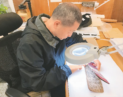 中國國家圖書館古籍修復專家在進行少數(shù)民族文字古籍數(shù)字化前的維護。