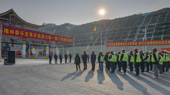 12月28日,在偉隆高速隆林東收費(fèi)站舉行的開通儀式上,廣西交投總經(jīng)理劉鑫介紹項(xiàng)目情況,廣西百色市領(lǐng)導(dǎo)講話,廣西自治區(qū)交通運(yùn)輸廳黨組成員李德春講話并宣布隆林委樂至革步高速公路一期工程建成通車。