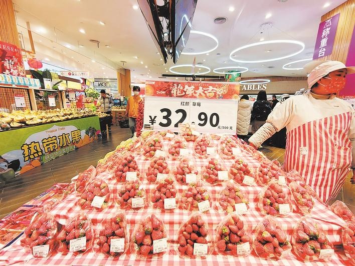 在連鎖超市里,頂級(jí)的紅顏草莓售價(jià)為32.9元一斤,這是在周末活動(dòng)價(jià)的基礎(chǔ)上提高了的價(jià)格。“現(xiàn)在最低29.9元一斤,銷量增長(zhǎng)得很快。”導(dǎo)購(gòu)員介紹,紅顏草莓在去年11月初上市時(shí)賣到過(guò)59.9元一斤,兩個(gè)月過(guò)后,跌幅超三成。“今年的草莓果型漂亮、甜度高,價(jià)格降得快,對(duì)消費(fèi)者來(lái)說(shuō)是好事。”