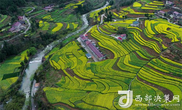 云巔巴山秀,棧道花海美。三月下旬,位于秦巴腹地的漢中市寧強縣巴山鎮(zhèn)石羊棧的梯田油菜花進入盛花期。放眼望去,金色的油菜花田層層疊疊,與連綿的青山、清澈的溪水、蜿蜒的公路、漂亮的民居等交相輝映,構(gòu)成一幅醉人的鄉(xiāng)村春日畫卷。(供稿:吳天文 劉炳林 鄭小兵)