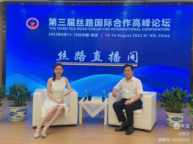 會(huì)前,秦晉集團(tuán)董事長楊百章接受了第三屆絲路國際合作高峰論壇媒體專訪。(圖/文 英子)